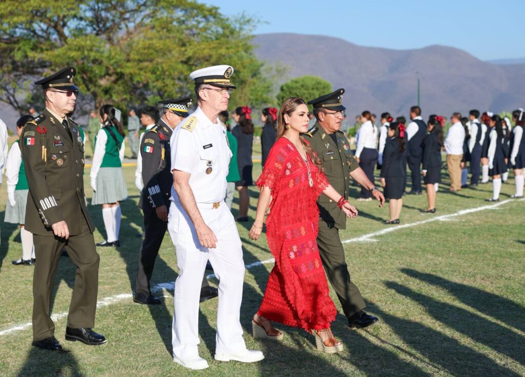 “Guerrero contribuye a construir el segundo piso de la transformación de México, llevando bienestar, derechos y oportunidades a cada región del estado”, expresó ante autoridades civiles y militares, así como estudiantes y docentes que participaron en la ceremonia.