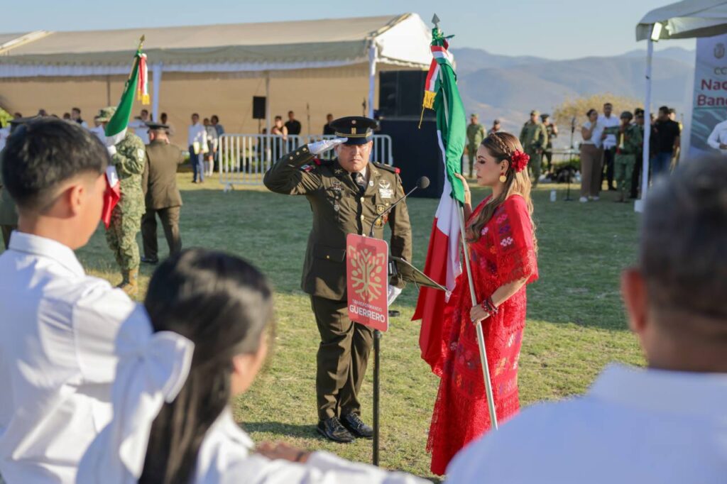Iguala de la Independencia, Gro., 24 de febrero de 2026.– En el marco del 205 aniversario del Día de la Bandera Nacional, la gobernadora Evelyn Salgado Pineda encabezó la ceremonia cívica de Izamiento de la Bandera Monumental y el abanderamiento de escoltas en el Cerro del Tehuehue, donde reafirmó su compromiso para seguir consolidando un Guerrero con bienestar y justicia social en el segundo piso de la Transformación de México que encabeza la presidenta Claudia Sheinbaum Pardo.