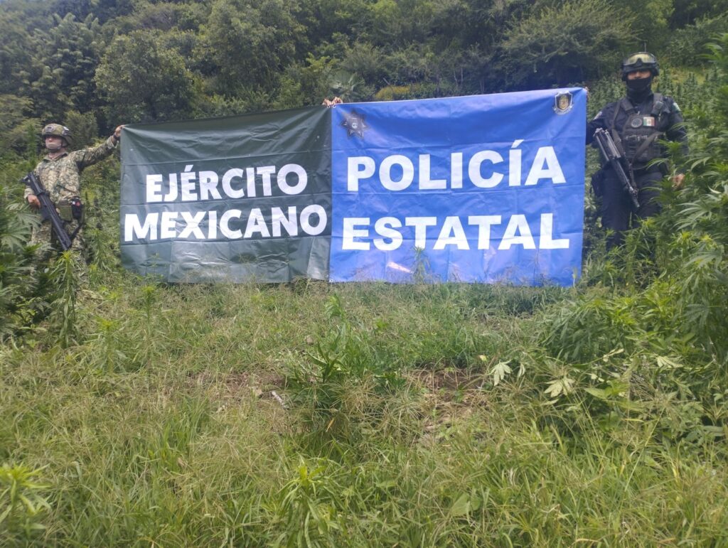En acciones operativas interinstitucionales, elementos del Ejército Mexicano, Guardia Nacional y Policía Estatal decomisaron aproximadamente 100 kilogramos de marihuana y destruyeron 12 mil metros cuadrados de plantíos en las inmediaciones de la localidad de Iyotla, municipio de Leonardo Bravo.