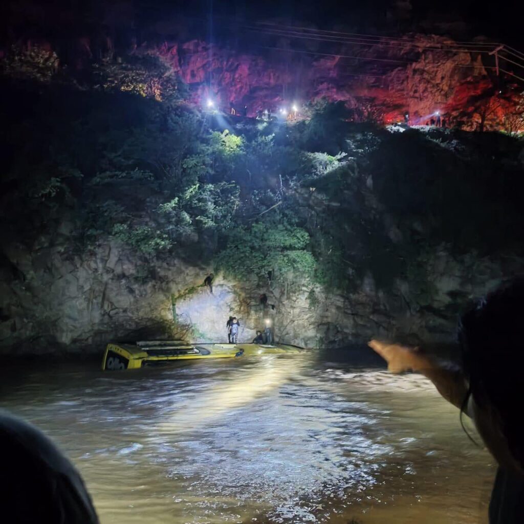 Ixcateopan, Mpio. de Alpoyeca, Gro., 4 de julio de 2025.- El Gobierno del Estado de Guerrero, a través de la Secretaría de Protección Civil, brindó atención inmediata a un accidente registrado durante la madrugada en la carretera Tulcingo–Tlapa de Comonfort, a la altura de la localidad de Ixcateopan, en el municipio de Alpoyeca, donde un autobús de pasajeros de la línea Oro volcó y cayó hacia un río.