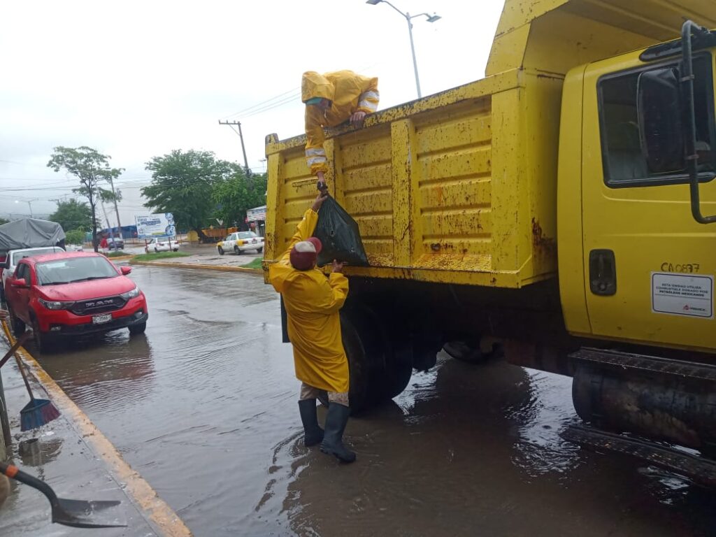 La Coordinación de Servicios Públicos a través de la dirección de Conservación y Mantenimiento se trasladó al bulevar Vicente Guerrero y la calle 2, de la colonia Emiliano Zapata, donde recolectaron residuos, previniendo con esto, mayores afectaciones.