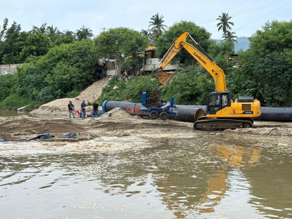 Acapulco, Gro., 24 de julio de 2025.- Con el objetivo de incrementar el suministro de agua potable en zonas media y alta del municipio, la Comisión Nacional del Agua (CONAGUA), en estrecha coordinación con CAPAMA, continúa con los trabajos de sustitución de 85 metros de tubería de 48 pulgadas en el acueducto Papagayo II, a la altura del puente de Tunzingo, infraestructura que cruza el río La Sabana.