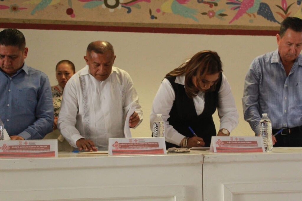 La presidenta municipal, Sara Salinas Bravo, y el Secretario General del Sindicato Único de Servidores Públicos del Estado de Guerrero (SUSPEG), Javier del Carmen Velázquez Pat, firmaron la minuta de acuerdos del Pliego Petitorio 2026 celebrado entre el Sindicato y el H. Ayuntamiento de Eduardo Neri.
