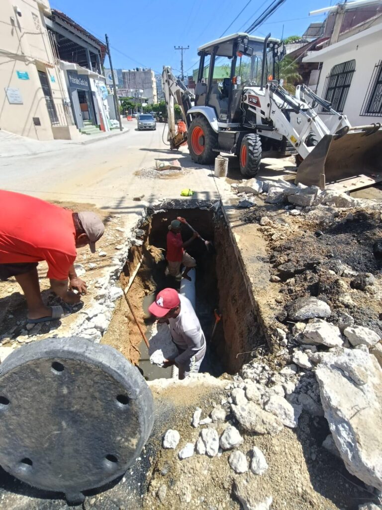 Asimismo, se llevó a cabo la rehabilitación de la red de drenaje en la calle Prolongación Parque Norte, en el fraccionamiento Costa Azul, donde se colocaron cuatro metros de tubería de 12 pulgadas de diámetro, solucionando de forma integral el desperfecto.