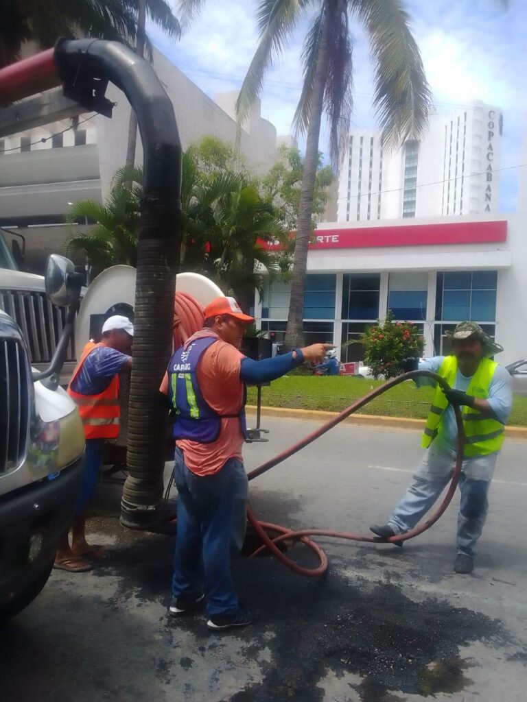 Durante el periodo del 20 al 27 de junio se atendieron poco más de 400 reportes por parte de las brigadas operativas tanto de agua potable como de saneamiento, entre las que destacan la sustitución de 12 metros de colector sanitario sobre la costera Miguel Alemán a la altura de lo que fue el Centro Internacional Acapulco.