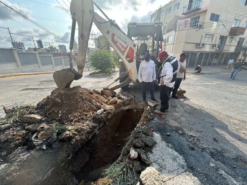 Personal operativo de la Comisión de Agua Potable y Alcantarillado del Municipio de Acapulco (Capama) sustituyó un tramo de ocho metros de tubería de drenaje sanitario que se encontraba colapsado en la calle Niños Héroes de Veracruz, en el fraccionamiento Costa Azul.