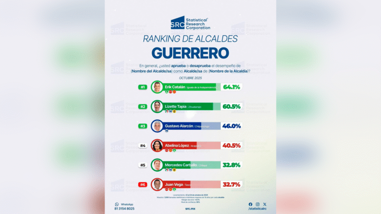 El edil de Chilpancingo alcanza el tercer lugar en aprobación ciudadana con 46% de respaldo