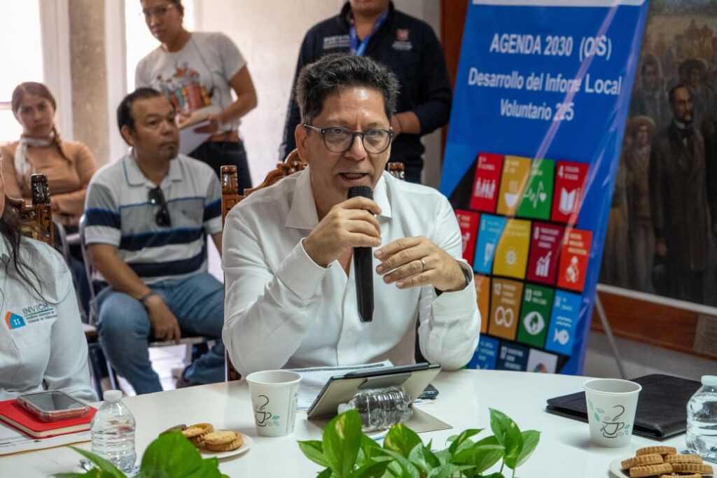 El Subsecretario de Desarrollo Regional y Concertación de la SEPLADER, Mario Raymundo Ochoa Núñez, compartió ejemplos del informe voluntario presentado por el Gobierno del Estado, destacando la importancia de fortalecer los mecanismos de evaluación municipal.