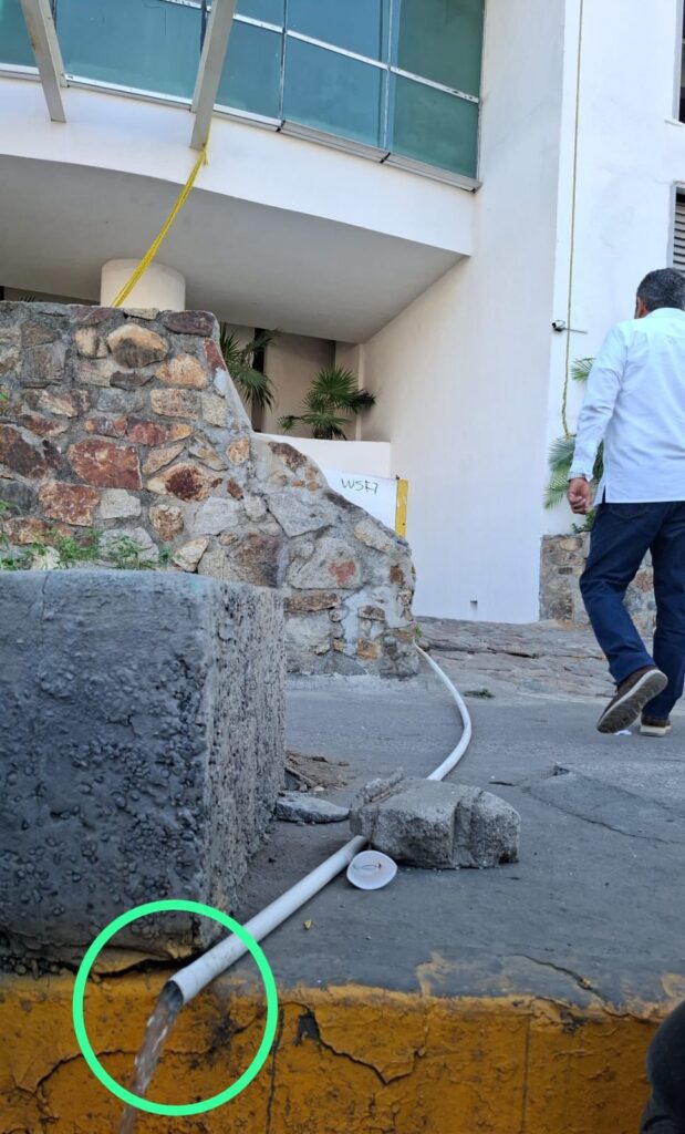 Esta acción se realizó, derivado de que se observó que se vertían aguas residuales hacia la vía pública, a través de una manguera flexible que provenía del estacionamiento de dicho condominio.