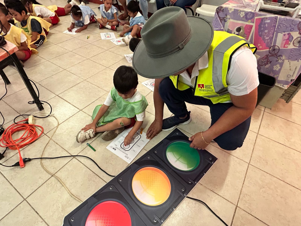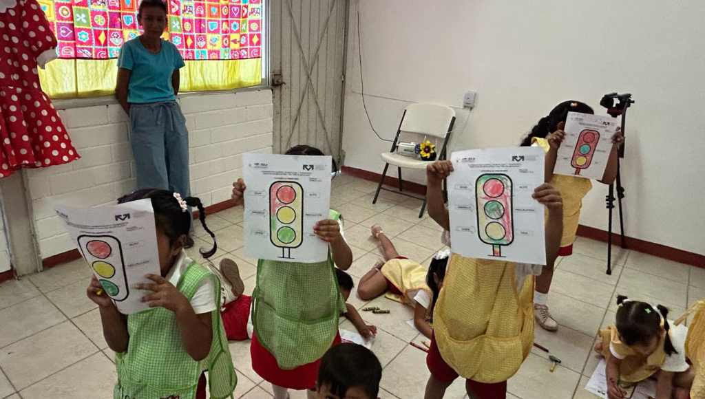 En esta actividad, el personal de Movilidad entregó a las y los niños hojas para colorear. A través de videos y actividades lúdicas, el personal explicó el significado de las luces del semáforo a fin de que comprendan que son señalamientos que se deben respetar.