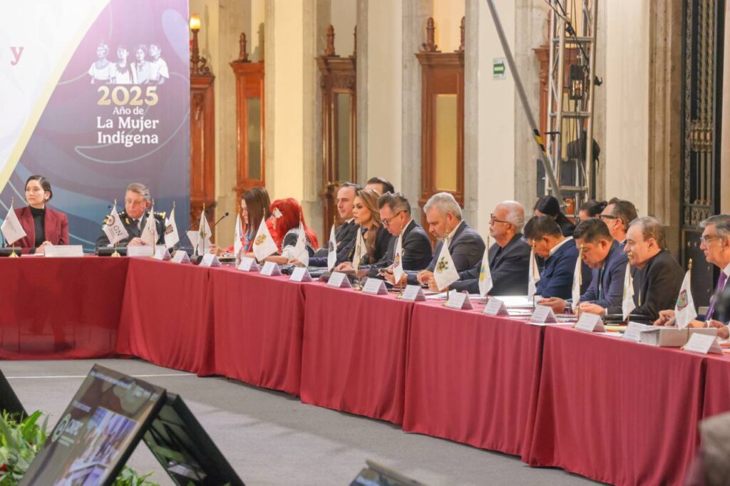 Durante la sesión, se presentó un balance de los primeros 14 meses del Gobierno de México, destacando avances significativos en materia de seguridad, donde estuvieron presentes las y los 32 gobernadores del país.