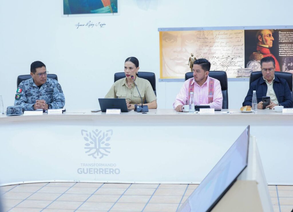 Chilpancingo, Gro., 7 de octubre de 2025. – La gobernadora Evelyn Salgado Pineda encabezó la sesión de la Mesa de Coordinación para la Construcción de la Paz, donde se dio seguimiento puntual a las acciones que fortalecen la seguridad en Guerrero.