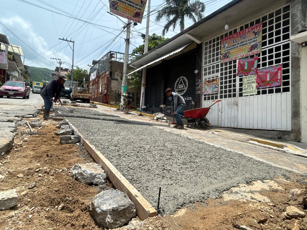 A fin de brindar vialidades de calidad, el Gobierno que preside Abelina López Rodríguez a través de la dirección de Maquinaria Pesada y Parque Vehicular, continúa rehabilitando calles con concreto hidráulico y asfáltico, como parte de su programa permanente de bacheo, además realiza otras labores como retiro de escombro, demolición de rocas y limpieza.