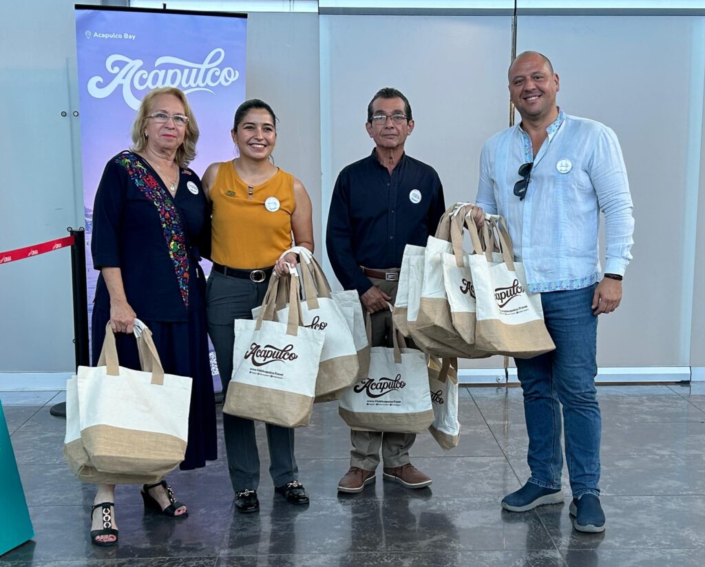 Dieron la bienvenida a los turistas, la Subsecretaria de Servicios Turísticos Covadonga Gómez Huerta y director general de Promoción Internacional de Sectur Guerrero, Sergio Palacios, la directora operativa del Fideicomiso para la Promoción Turística de Acapulco, Aida Patricia Pérez Pérez y la CEO en México de la empresa Swissport, Marcela Gabriela Gaboda.