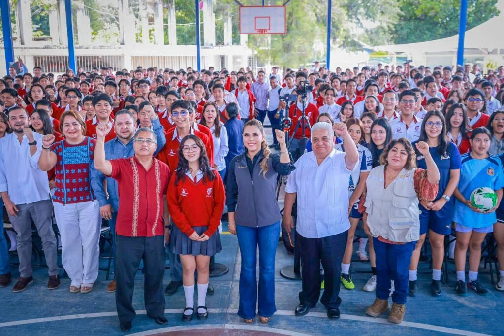 “Estamos garantizando espacios dignos para que los jóvenes practiquen el deporte que les apasiona. Por eso, seguimos invirtiendo en infraestructura deportiva, como esta cancha, que beneficiará directamente a más de mil 900 alumnos de esta institución”, expresó la gobernadora.
