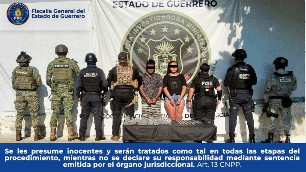 Como resultado de acciones operativas interinstitucionales, personal de la Policía Estatal, el Ejército Mexicano, Marina, Guardia Nacional, la Secretaría de Seguridad y Protección Ciudadana y la Fiscalía General del Estado de Guerrero detuvieron a tres masculinos en posesión de armamento, cartuchos y presunta droga en la localidad de Barra de Coyuca, municipio de Coyuca de Benítez.