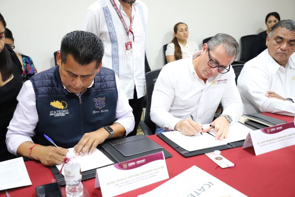 El secretario de Contraloría y Transparencia Gubernamental, José Francisco González Sánchez, formalizó este acuerdo con el Instituto de Capacitación para el Trabajo del Estado de Guerrero (ICATEGRO) a cargo de Marco Antonio Marbán Galván.
