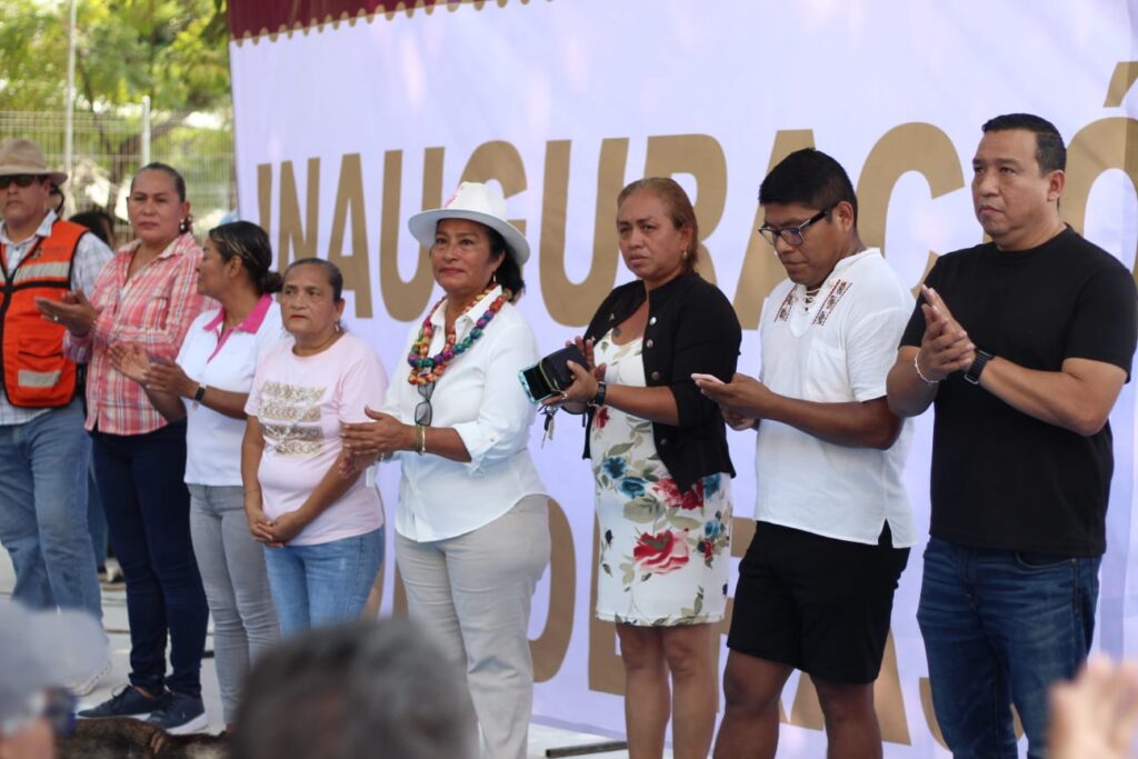 Durante su gira de trabajo, acompañada por la secretaria general del Ayuntamiento, Leticia Lozano Zavala, la alcaldesa entregó la cancha pública El Amate, proyecto que contó con una inversión de 2 millones 620 mil pesos y que constituye un espacio recuperado para el deporte, la recreación y la integración social, tras permanecer durante años como una solicitud pendiente de las familias del lugar.