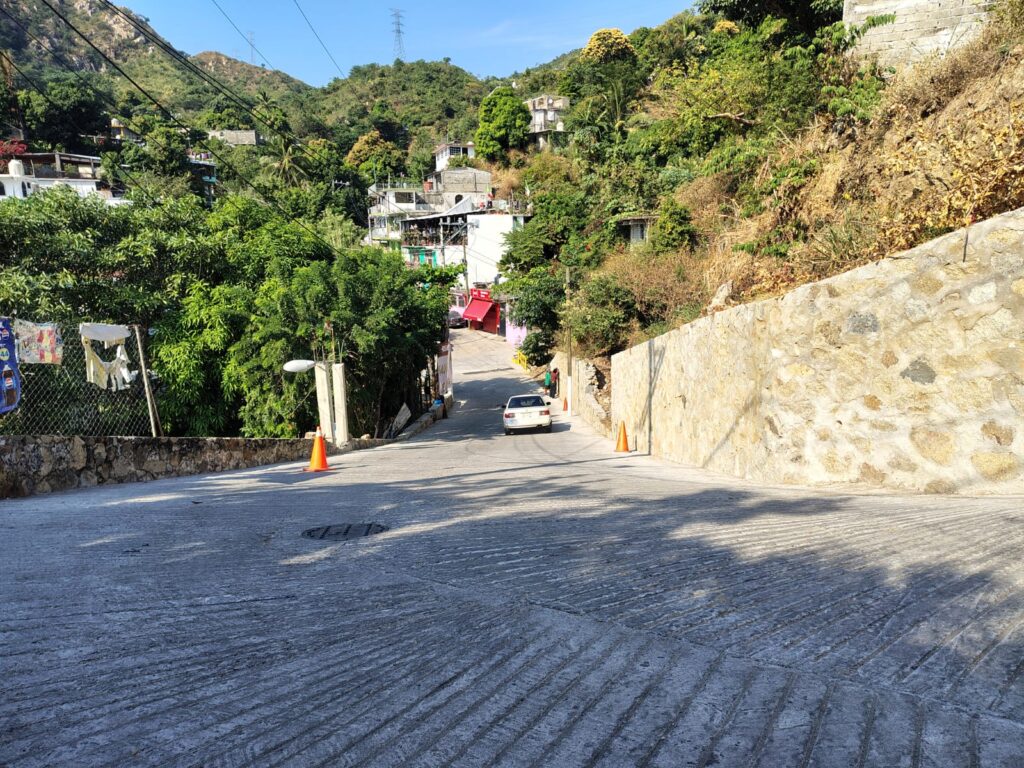 Más tarde, la presidenta recorrió junto a vecinas y vecinos la calle La Paz, donde entregó la pavimentación de 75 metros lineales, con un ancho de seis metros y un espesor de losa de 15 centímetros, además de descargas domiciliarias, rodapié y un muro de contención que brinda mayor seguridad a quienes transitan por la zona. Esta intervención contó con una inversión de 1 millón 444 mil pesos.