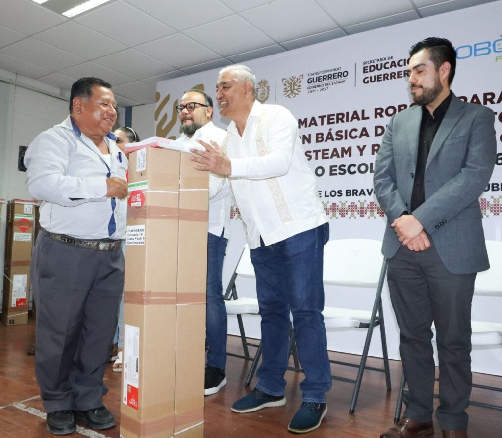 El secretario de Educación en Guerrero, Ricardo Castillo Peña, junto con el gestor de Proyectos de la Fundación RobotiX, Saúl Zamora, hicieron la entrega a docentes y alumnos de los centros educativos, quienes gradecieron este apoyo y el compromiso del gobierno estatal por procurar la educación de las y los guerrerenses que buscan forjarse un camino a través de las aulas.
