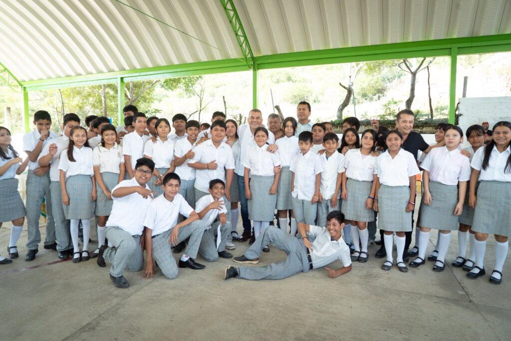 El presidente municipal Erik Catalán Rendón encabezó la entrega del techado con estructura metálica en la cancha de usos múltiples de la Telesecundaria “Plan de Iguala”, de Ahuehuepan, una obra que beneficiará directamente a estudiantes, docentes y habitantes de esta comunidad.