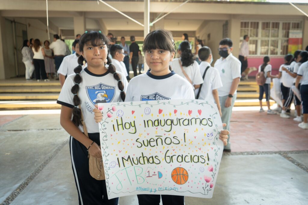 En su mensaje, destacó que esta obra es un compromiso cumplido para que los alumnos desarrollen sus habilidades deportivas y fortalezcan la convivencia en instalaciones de calidad.