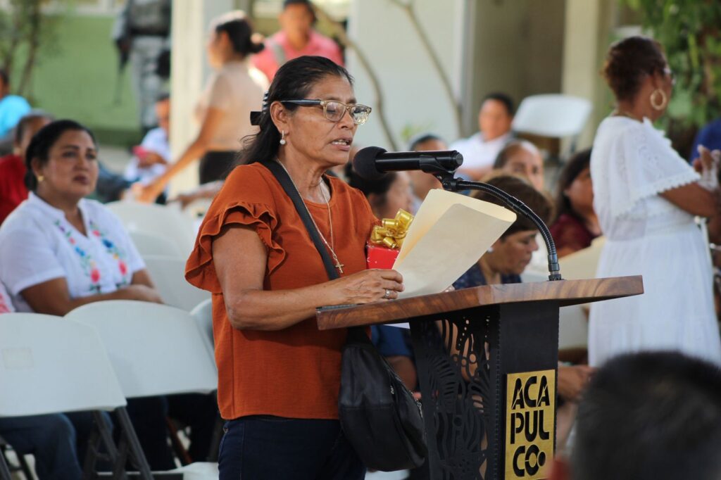 Paula Cruz Carmen expresó su agradecimiento por la construcción de la barda perimetral afectada por el huracán Otis: “Le agradecemos la construcción de la barda perimetral que fue construida por el huracán Otis y hoy gracias a su gestión la tenemos hecha, gracias presidenta por el corazón tan grande que tiene en donde cabe no solo Acapulco sino también todo Guerrero“.