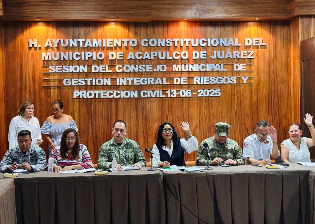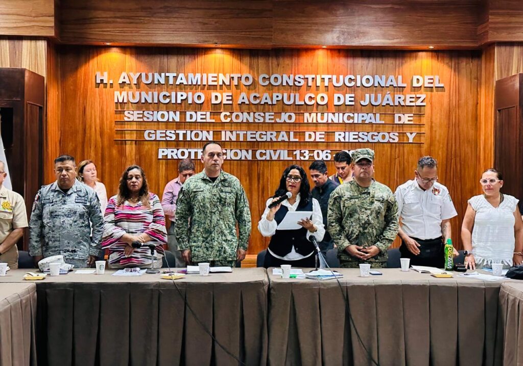Acapulco, Gro., 13 de junio de 2025.- La Presidenta Municipal, Abelina López Rodríguez encabezó la Sesión Extraordinaria del Consejo Municipal de Gestión de Integral de Riesgos y Protección Civil, en la que se estableció fase naranja de alertamiento ante la tormenta tropical “Dalila”.