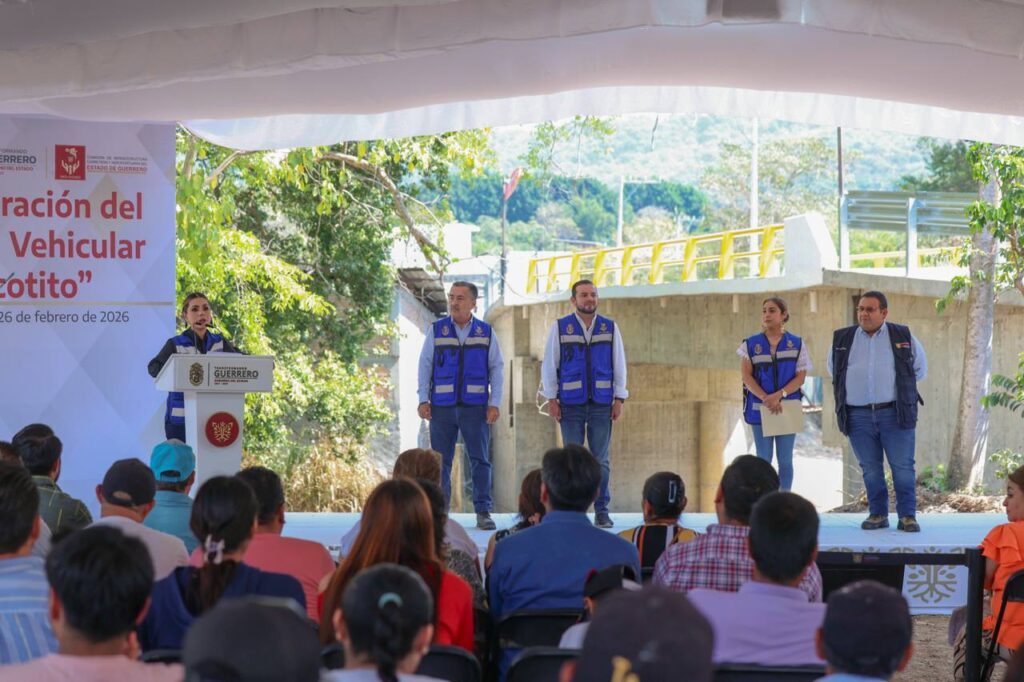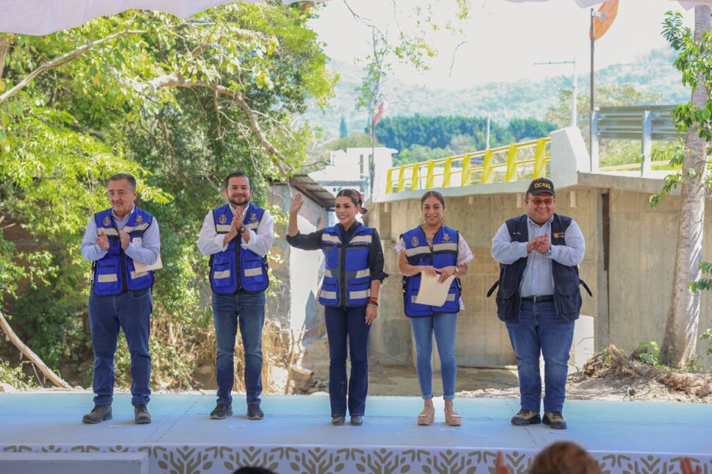Durante una gira de trabajo en El Ocotito, donde estuvieron presentes vecinos de la comunidad y poblados aledaños, la mandataria cortó el listón inaugural del puente vehicular “Ocotito” en el punto conocido como el Vado de Barrio Viejo, que representó una inversión de 8.8 millones de pesos, beneficiando a 30 mil 500 habitantes de Tlahuizapa, Carrizal de Pinzón, Cajelitos, Rincón de la Vía, Zoyatepec, Iscuinatoyac, Coacoyulillo y La Esperanza.