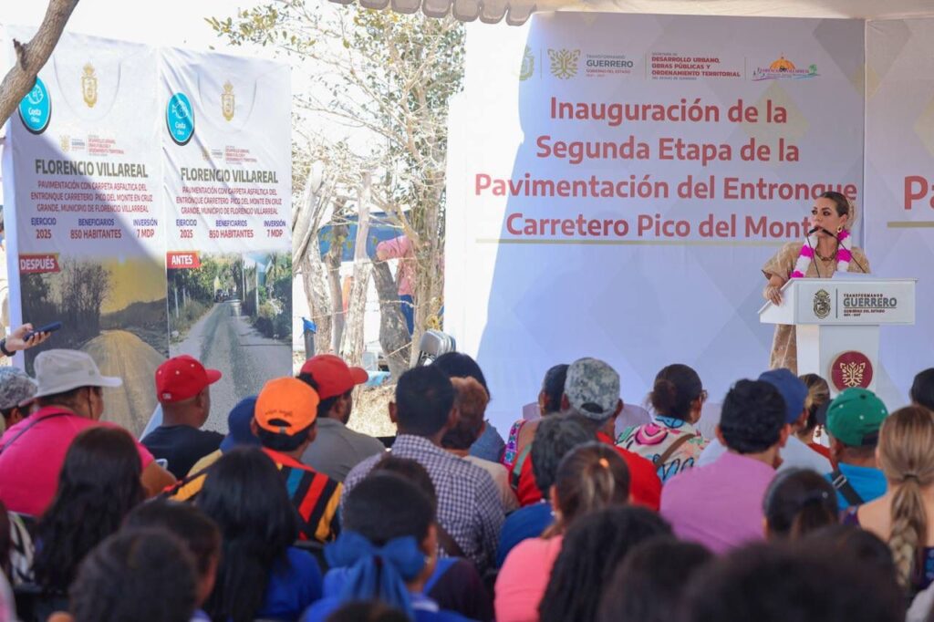 urante su gira de trabajo por el municipio de Florencio Villarreal en la Costa Chica, la gobernadora Evelyn Salgado Pineda, inauguró la segunda etapa de la pavimentación del entronque carretero Pico del Monte, impulsando una mayor conectividad, disminuyendo los tiempos de traslado, acercando los servicios a la población y promoviendo la actividad turística. Con estas acciones se demuestra que el desarrollo y el bienestar de los guerrerenses son una prioridad.