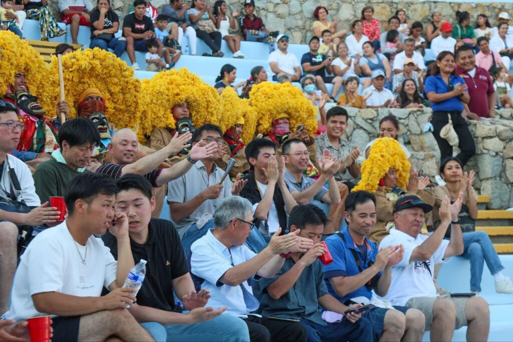 Esta fiesta de color y magia llenó de mucha alegría el escenario del auditorio al aire libre del Parque Papagayo, donde acapulqueños dieron la bienvenida a los nipones bailando el chile frito con ellos.