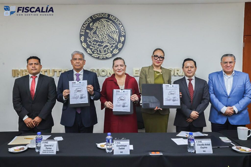 Chilpancingo, Gro. a 26 de septiembre de 2025.— El Fiscal General del Estado de Guerrero, Dr. Zipacná Jesús Torres Ojeda, firmó un Convenio de Colaboración entre la Fiscalía General del Estado y el Instituto Nacional Electoral (INE), encabezado por la Consejera Presidenta, Lic. Guadalupe Taddei Zavala, como parte de un acuerdo estratégico que fortalece las acciones de búsqueda e identificación digna de personas desaparecidas o no localizadas, mediante el uso de tecnología y datos biométricos.