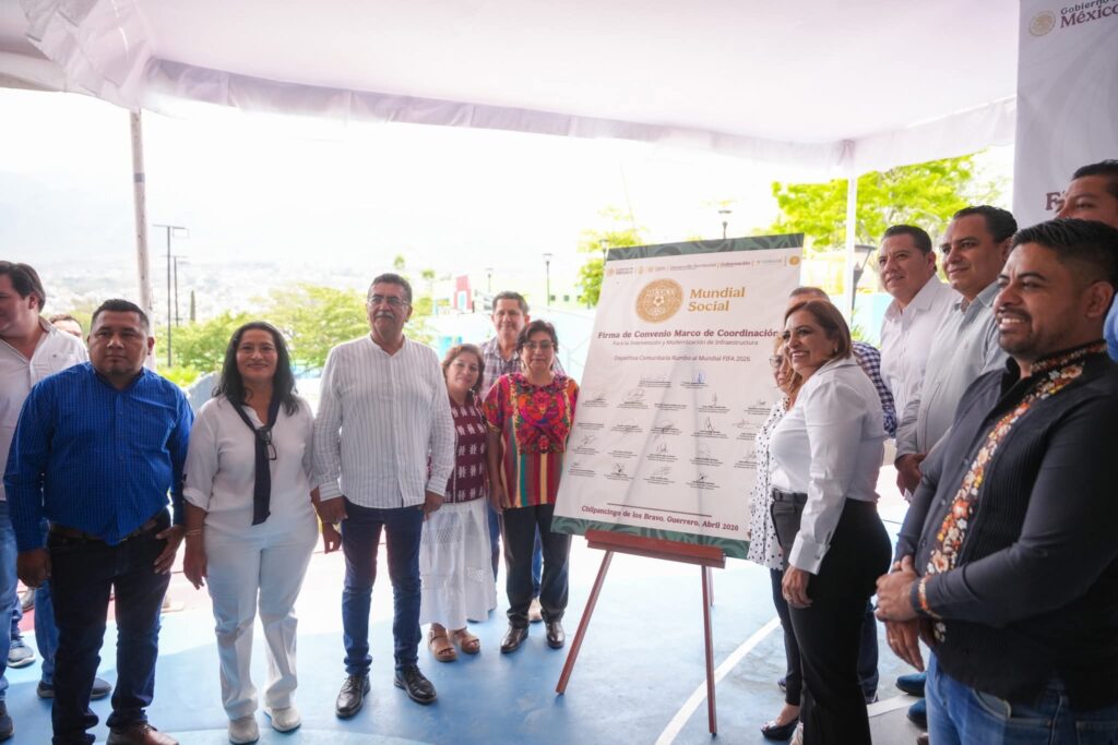 Chilpancingo, Gro., 13 de abril de 2026.- La modernización de infraestructura rumbo al Mundial FIFA 2026 avanzó en la capital del estado con la firma del Convenio Marco de Coordinación para la intervención de espacios públicos y su seguimiento social, acto en el que la presidenta municipal de Acapulco, Abelina López Rodríguez, participó como invitada en la formalización del acuerdo que impulsa acciones en unidades deportivas y centros de convivencia.