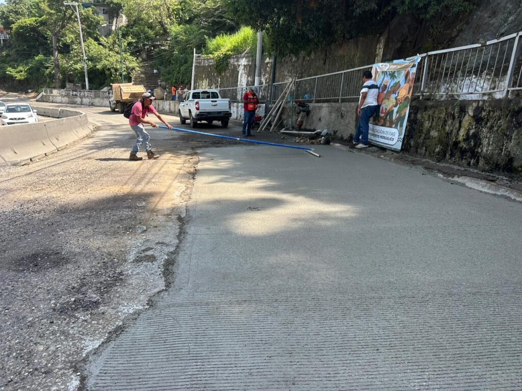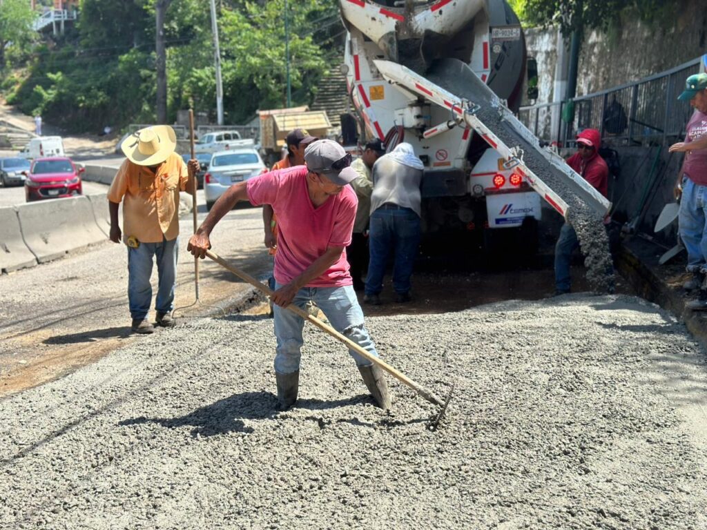 La dependencia lleva a cabo la demolición de la carpeta asfáltica dañada, la preparación de la base y la aplicación de siete metros cúbicos de concreto hidráulico premezclado. El objetivo es reforzar la resistencia de la superficie y mejorar las condiciones de movilidad en este acceso estratégico al poniente de Acapulco.