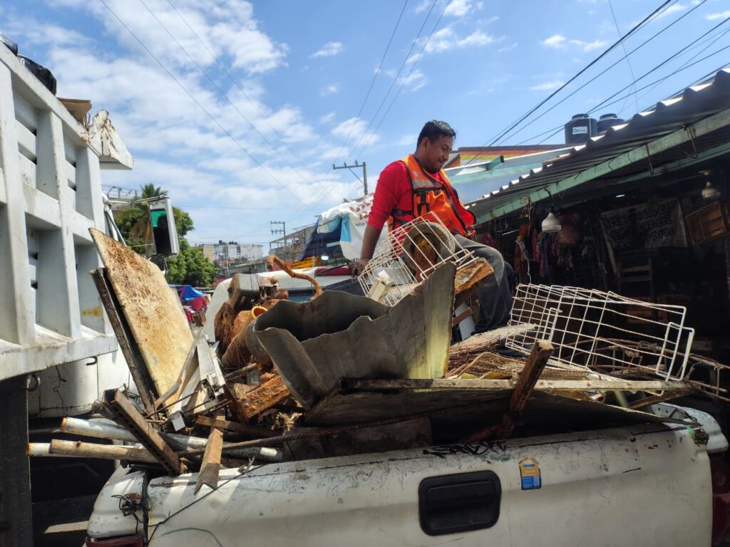 Durante estas acciones se retiraron un total de 10 toneladas de desechos, distribuidas en 4 toneladas de basura y 6 toneladas de escombro, con la colaboración activa de los locatarios del mercado.