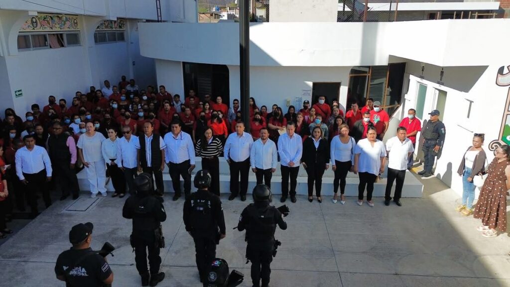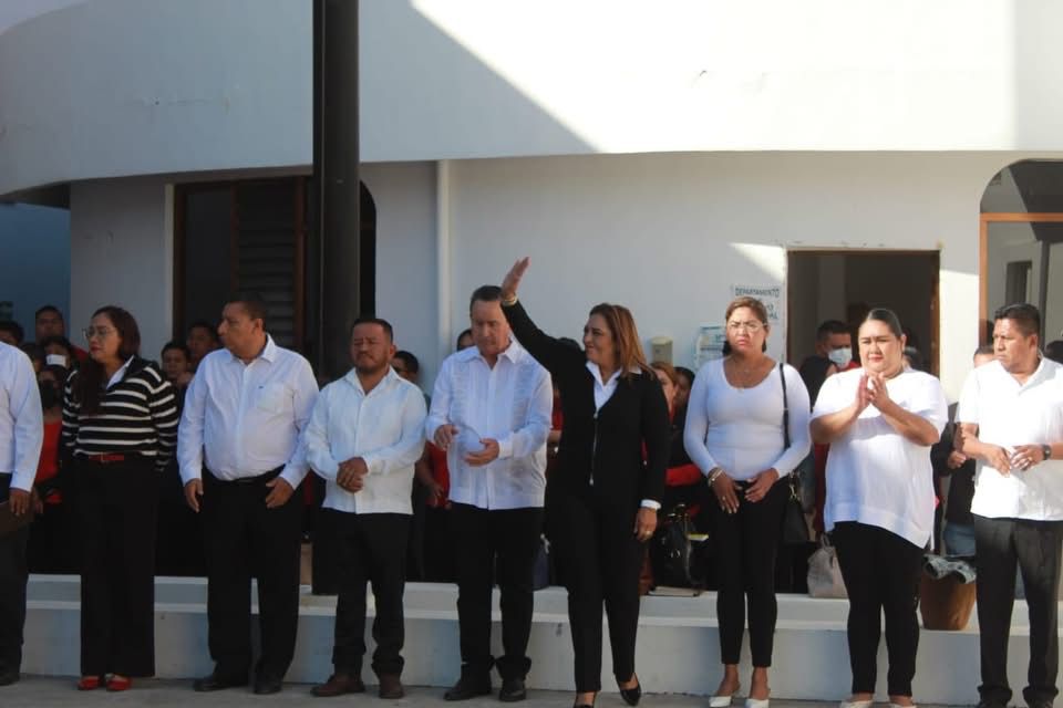 Durante el cual, con la participación de la banda de guerra y la escolta del área de Seguridad Pública, se entonó de manera respetuosa el himno nacional y se llevó a cabo el izamiento a toda asta de nuestra bandera.