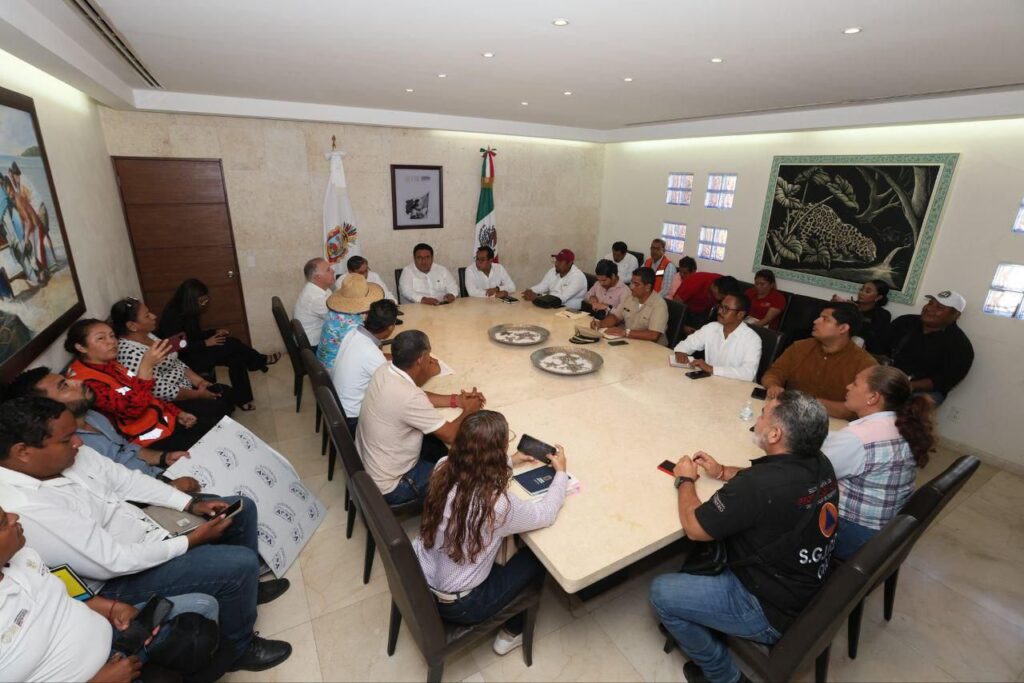 El encuentro fue encabezado por el subsecretario de Desarrollo Político y Social, Francisco Rodríguez Cisneros, junto al secretario de Turismo, Simón Quiñones Orozco; el titular de la Secretaría de Medio Ambiente y Recursos Naturales, Ángel Almazán Juárez; y el director general de la CAPASEG, Facundo Gastélum Félix.