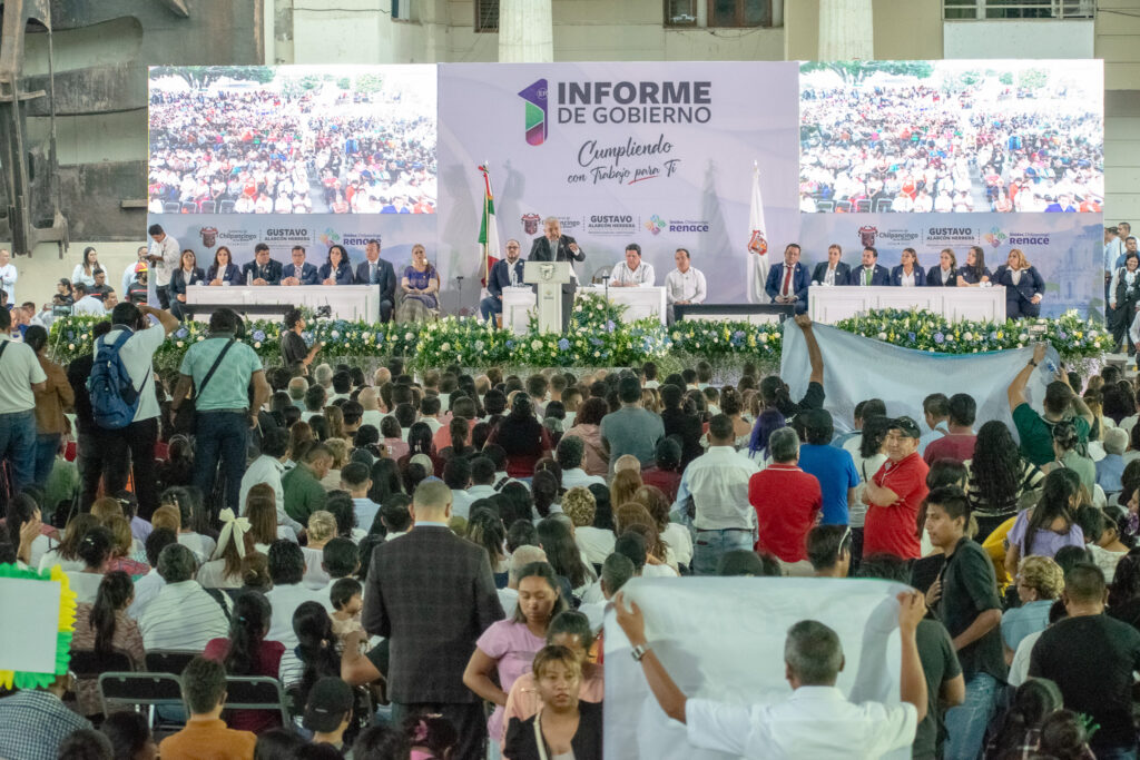 En materia de infraestructura, Alarcón informó que se invirtieron más de 410 millones de pesos en 250 obras de agua potable, drenaje, pavimentación, electrificación, aulas, espacios deportivos y urbanos. “No son obras faraónicas, pero son obras que cambian la vida cotidiana de la gente. Cada obra tiene un rostro humano”, dijo el presidente municipal, subrayando que la transformación de Chilpancingo se construye desde lo básico y lo esencial.