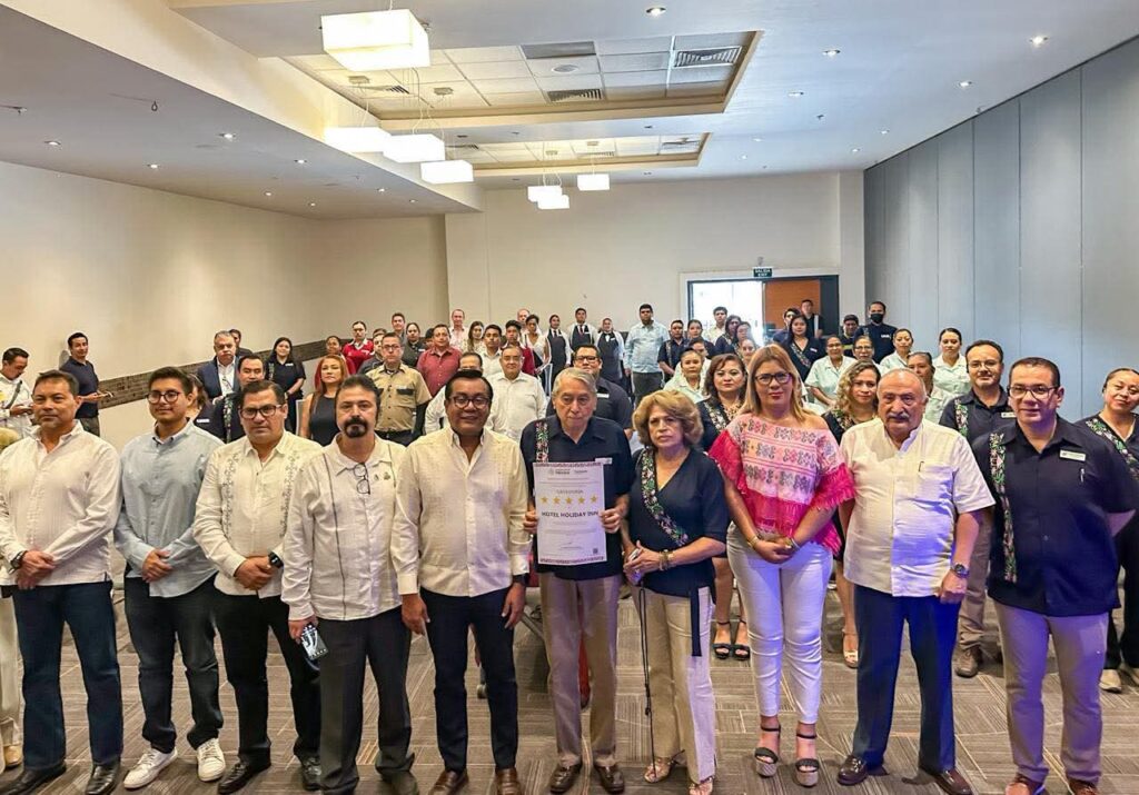 El secretario de Turismo de Guerrero, Simón Quiñones Orozco, entregó la constancia del Sistema de Clasificación Hotelera con una categoría de 5 estrellas al hotel Holiday Inn Chilpancingo, a cargo de su director general, Luis Bahena Pineda. Este reconocimiento otorgado por la Secretaría de Turismo de México, destaca el cumplimento de los altos estándares de calidad en servicios e instalaciones para los clientes.