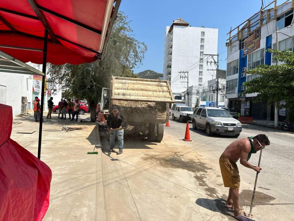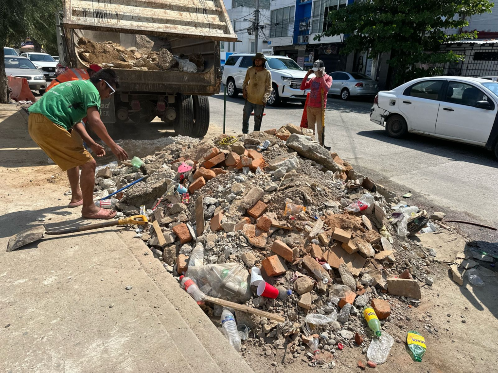 Además de bacheo, se realiza el retiro de escombros y demolición de roca en Cumbres de Llano Largo, calle Quetzal y Reforma a la altura de la Unidad Deportiva Vicente Suárez, así como en la calle Almirante Andrea Doria en Costa Azul.