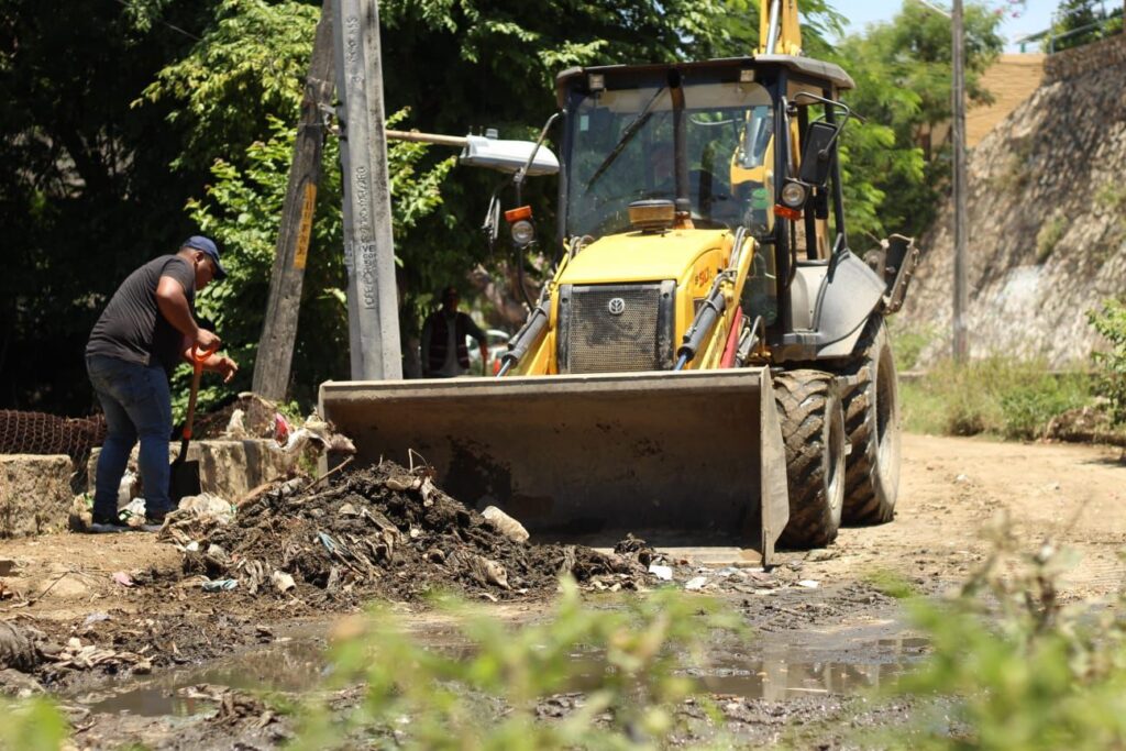 Derivado de las lluvias recientes, el arrastre de residuos sólidos y vegetación afectó la vialidad y diversos espacios públicos. En respuesta, una cuadrilla integrada por 20 trabajadores, con apoyo de maquinaria pesada, logró recolectar más de 30 toneladas de basura, lodo y maleza en la primera jornada.
