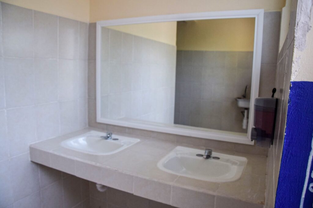 El módulo de baños entregado cuenta con espacios adecuados y dignos para las y los estudiantes, y fue posible gracias a la construcción de un muro de contención, rampas de acceso y obras complementarias que optimizan el espacio reducido con el que cuenta la escuela. También fueron instalados lavabos, sanitarios e infraestructura funcional para garantizar condiciones de higiene, seguridad y salud.