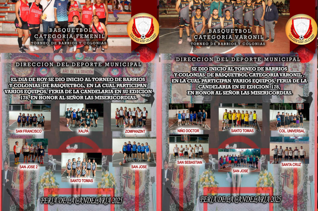 Zumpango del Río, Gro., 17 de enero de 2025.- Como parte de las festividades celebradas en el marco de la Feria de la Candelaria 2025 edición 178, en Honor al Señor de las Misericordias, esta semana arrancó el Torneo de Básquetbol de Barrios, Colonias y Comunidades 2025 de Eduardo Neri, en sus categorías Femenil y Varonil, con encuentros llenos de intensidad realizados en la Cancha de la Unidad Deportiva San José de Zumpango del Río.