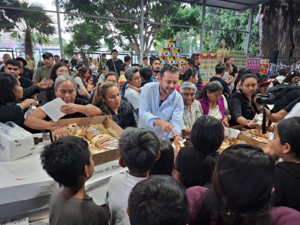 Durante el encuentro, el legislador partió la tradicional Rosca de Reyes y entregó juguetes, además de llevar juegos inflables que permitieron a las y los menores disfrutar de una jornada de convivencia y recreación.
