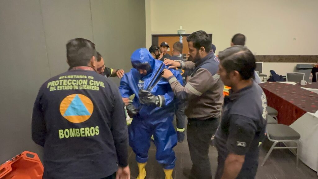 Chilpancingo, Gro., 27 de noviembre de 2024.- Para fortalecer sus conocimientos y capacidades de reacción en el manejo de emergencia generadas por sustancias peligrosas, el gobierno del estado a través de la Secretaría de Gestión Integral de Riesgos y Protección Civil, en coordinación con la empresa minera Los Filos, este miércoles impartieron una capacitación integral al personal operativo de la dependencia estatal.