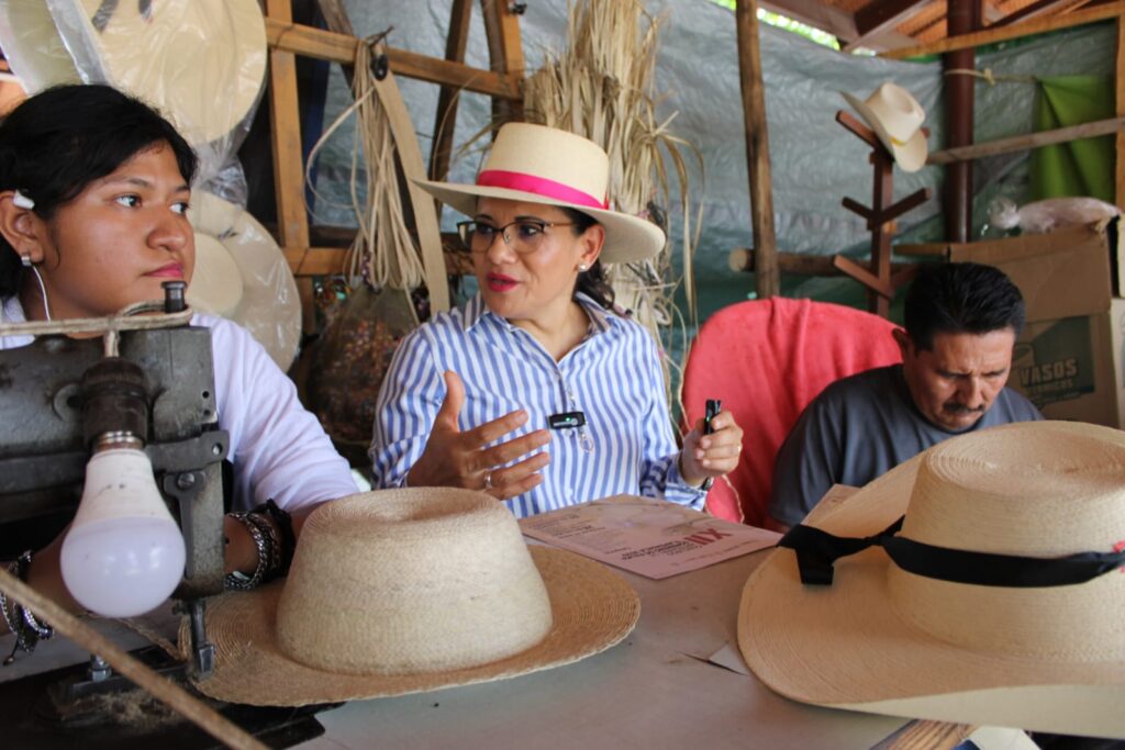 Ciudad Altamirano, Gro., 08 de julio del 2025.- Con el objetivo de impulsar la creatividad en la producción artesanal de sombreros finos de palma, la secretaria de Fomento y Desarrollo Económico (SEFODECO), Teodora Ramírez Vega presentó a los artesanos la convocatoria del XII Concurso Local Artesanal de Sombrero de Palma Tlapehuala 2025, en su gira de trabajo por la región de la Tierra Caliente.