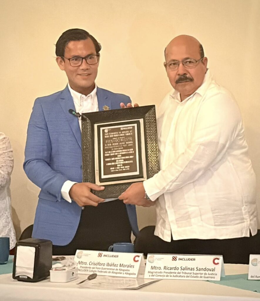 Durante el evento, el representante legal de las organizaciones convocantes, Crisóforo Agustín Ibáñez Morales, entregó un reconocimiento al Magistrado Presidente por su trayectoria de más de 35 años en el ámbito jurídico y su incansable labor al servicio de la justicia.
