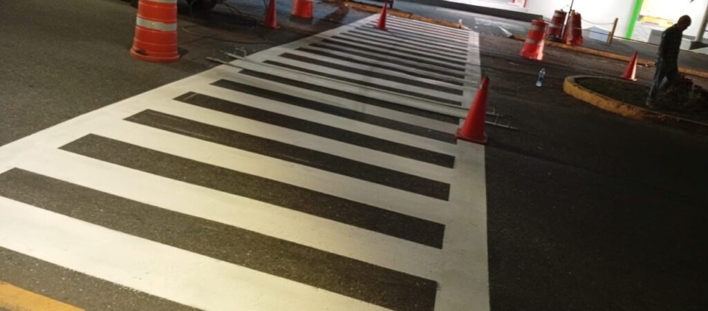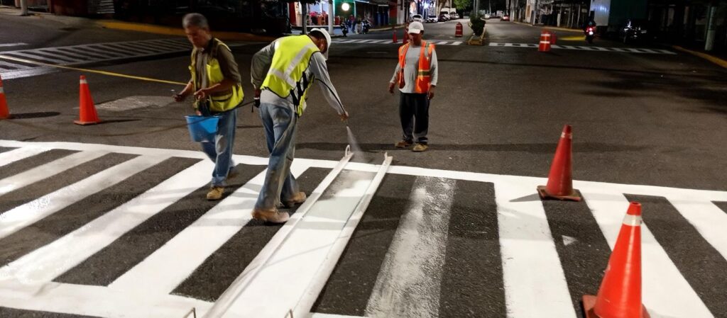 Por indicaciones de la presidenta municipal, Abelina López Rodríguez, se pintaron y rehabilitaron líneas peatonales tipo “marimba” en tramos estratégicos, con materiales de alta visibilidad que garantizan respeto a los pasos y ordenan la circulación.