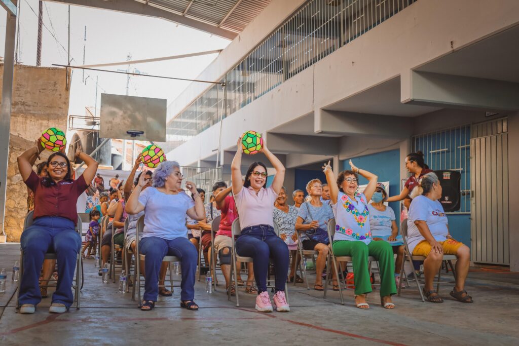 Más de 50 adultos mayores participaron en dinámicas que incluyeron ejercicios de coordinación física y memoria, así como exámenes de la vista realizados de manera gratuita.