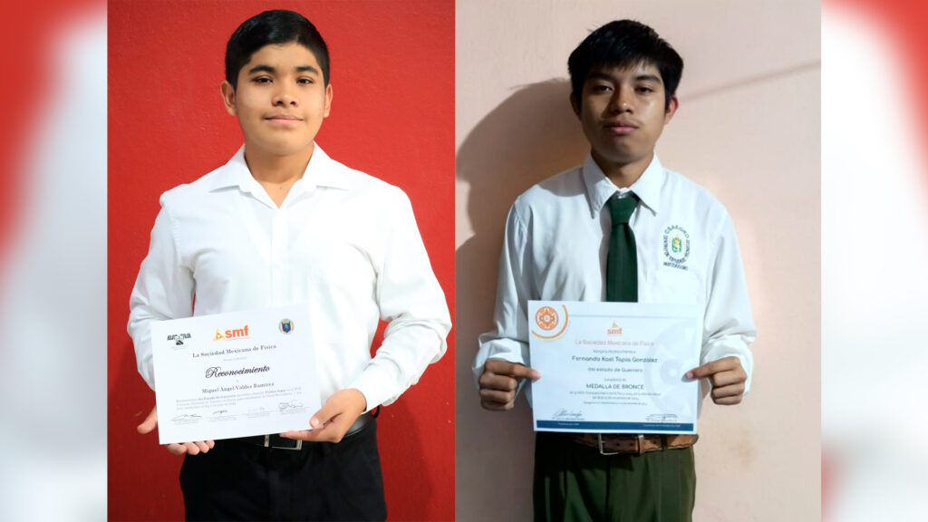 Chilpancingo, Gro., 27 de diciembre del 2024.- Como resultado del apoyo a la educación en Guerrero, el estudiante Miguel Ángel Valdez de Chilpancingo, obtuvo la medalla de oro en el XVII Concurso Nacional de Talentos en Física 2024 y Fernando Kael Tapia, de Huitzuco con medalla de bronce nacional, en la XXXV Olimpiada Nacional de Física.